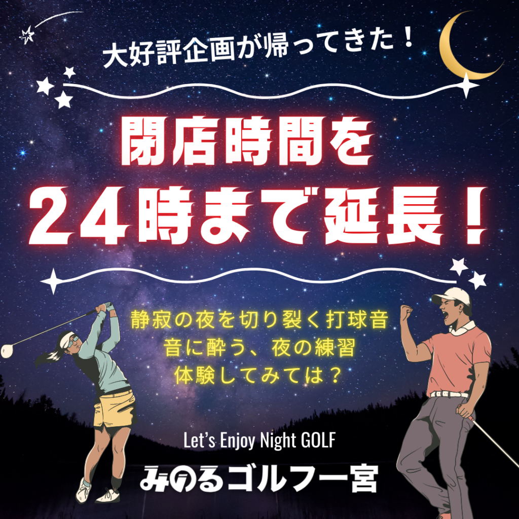 閉店時間を24時まで延長!夜練習は一宮へ⛳(2026.02.20更新)