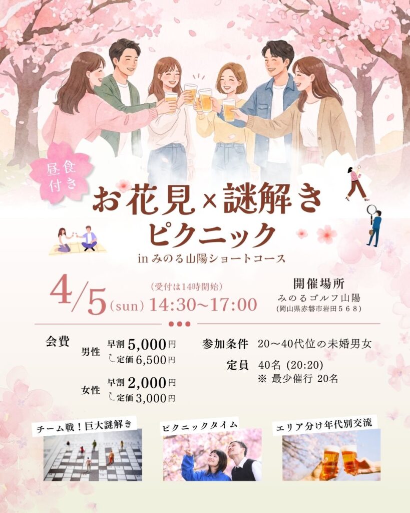 🌸お花見 × 謎解き × ピクニック婚活🌸 in みのる山陽ショートコース