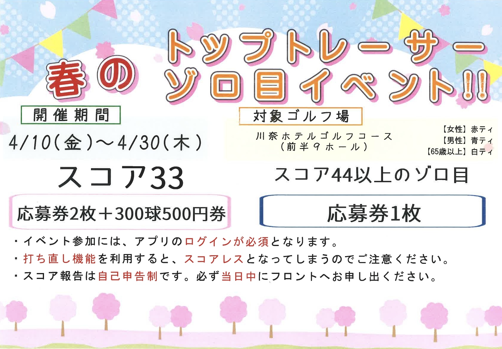 ・スコア報告は自己申告制(当日中にフロントへ申告)