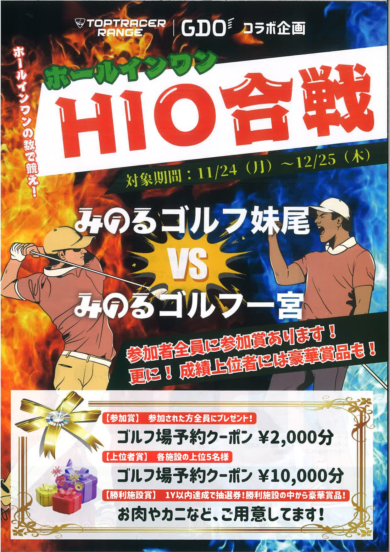 - 期間中にTOPTRACERのホールインワンゲームにご挑戦ください。