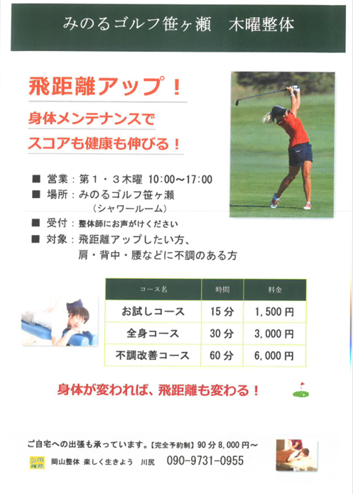 ゴルフのパフォーマンスを上げたい方、身体の不調を整えたい方へ。
