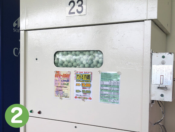 現金専用ボール貸出機にて現金でボールを出し、そのまま打席へお入りください。